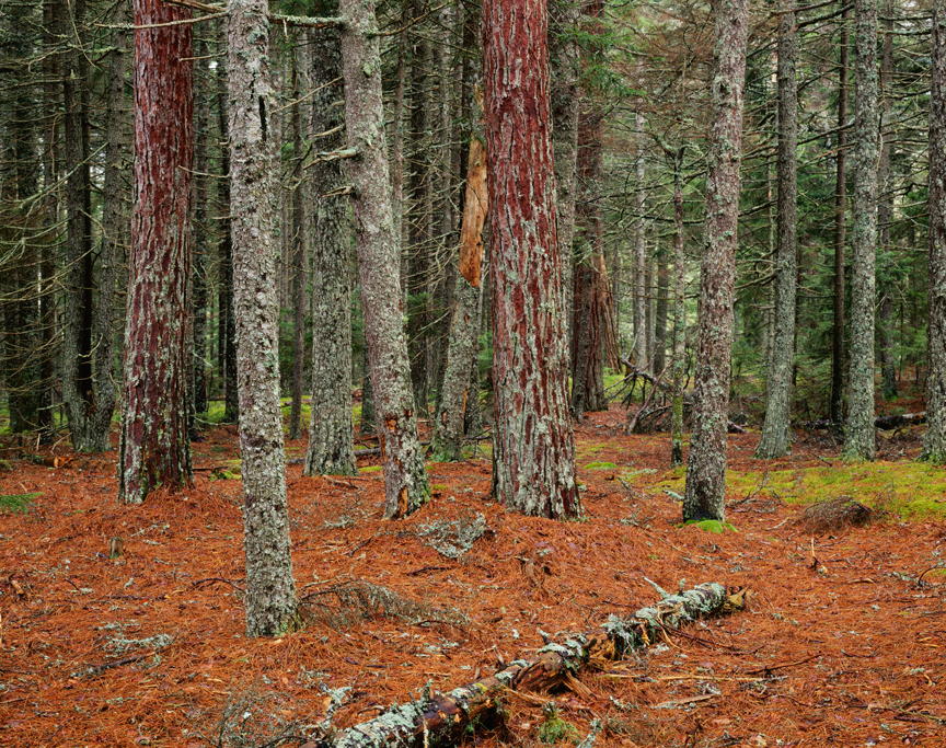 45-SUAC93 Published August 3, 2013 at 864 × 683 in 45-SUAC93 Red Pine and Spruce Tree Trunks in Spruce Forest, Acadia National Park Mt. Desert Island, ME Original: 4×5 inch color transparency AG: 1893