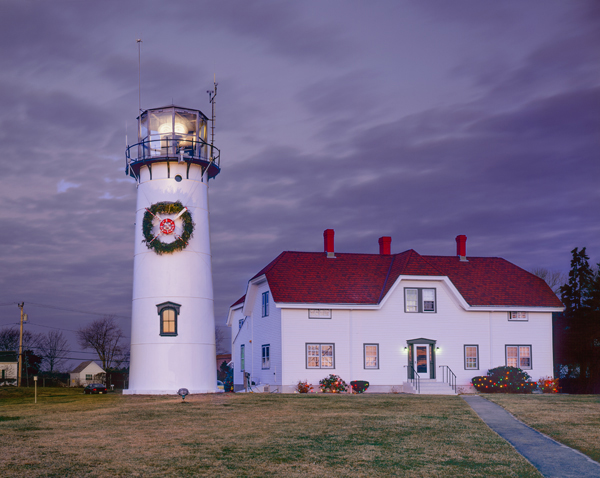 45-WCC56F Published July 8, 2013 at 600 × 478 in 45-WCC56F Chatham Lighthouse with Holiday Lights and Wreath, Cape Cod, Chatham, MA