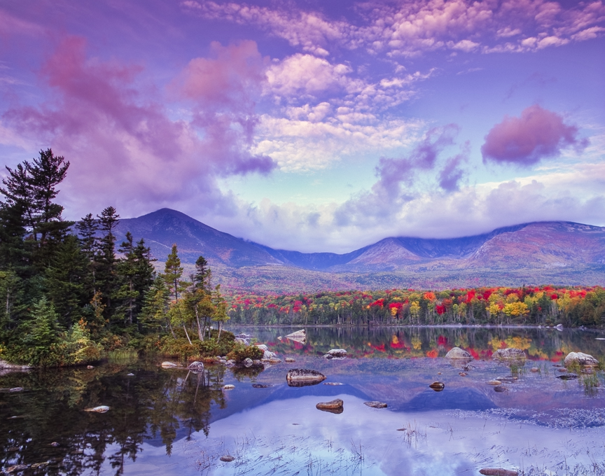 67-FBX3 Published July 1, 2014 at 864 × 680 in 67-FBX3 Mt. Katahdin and Sandy Stream Pond with Early Morning Clouds, Baxter State Park, ME