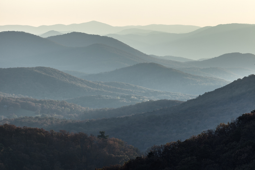 D-FSH3 Published December 3, 2013 at 864 × 576 in D-FSH3 Backlit Mountain Layers in Autumn, View from Skyline Drive, Shenandoah National Park, Augusta County, VA