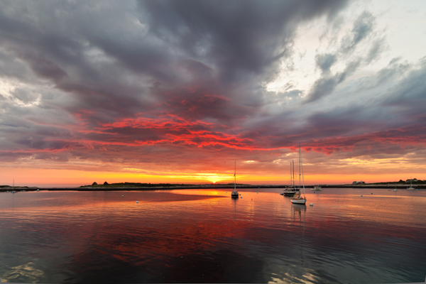 D-SSMC7B Published December 10, 2012 at 600 × 400 in D-SSMC7B Boats in Gosport Harbor at Sunrise, Isles of Shoals, View from Star Island, Rye, NH out to Smuttynose and Cedar Islands, Kittery, ME