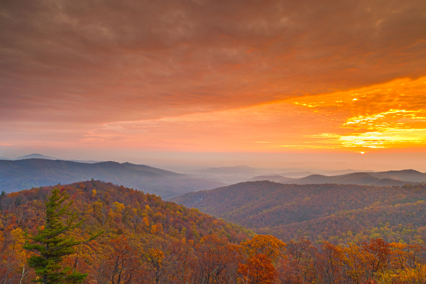 D-SSSH13 Published December 3, 2013 at 864 × 576 in D-SSSH13 Sunrise over Blue Ridge Mountains in Autumn, View from Skyline Drive, Shenandoah National Park, Rappahannock County, VA