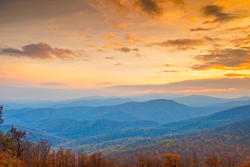 D-SSSH6 Published December 3, 2013 at 864 × 576 in D-SSSH6 Sunset over Length of Blue Ridge Mountain Range in Autumn, View from Skyline Drive, Shenandoah National Park, Rappahannock County, VA