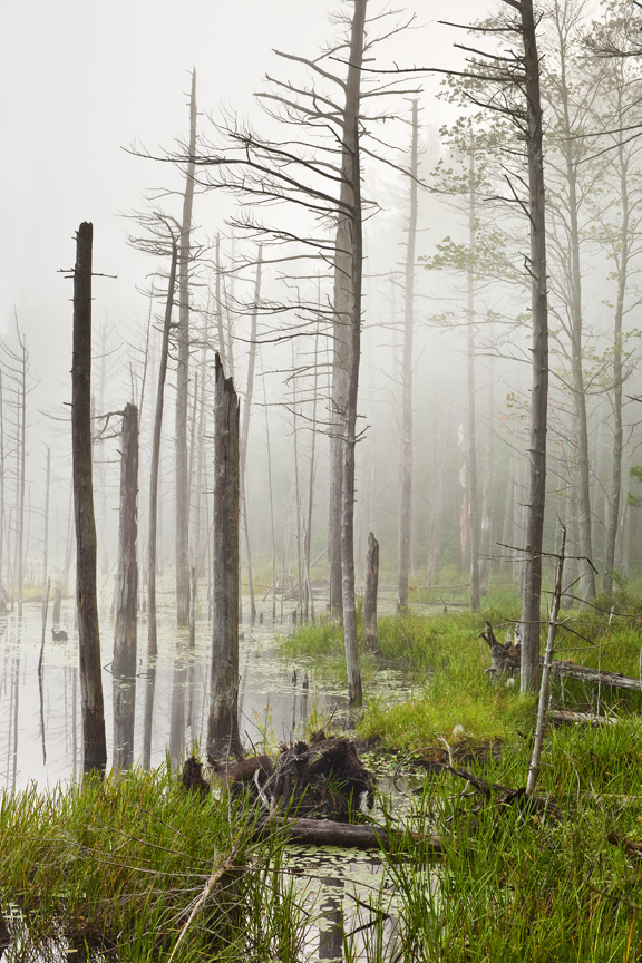 D-SUBH1 Published August 3, 2013 at 576 × 864 in D-SUBH1 Old Snags, Wetlands, and Fog in Birch HIll Wildlife Management Area, Winchendon, MA