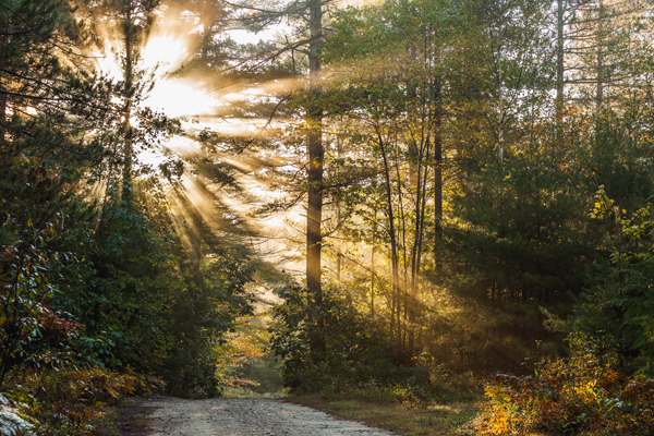 D-SUCR8 Published December 10, 2012 at 600 × 400 in D-SUCR8 Sunbeams through Trees along Country Road, Birch Hill Recreation and Wildlife Management Area, Winchendon, MA