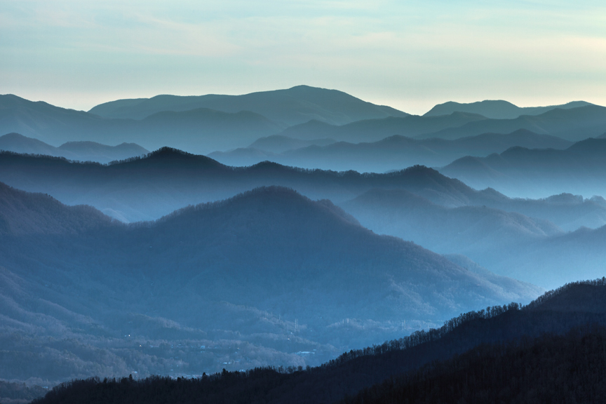 D-WGS24 Published May 4, 2015 at 864 × 576 in Home Mountain Layers in Early Evening Light, View from Newfound Gap Road, Great Smoky Mountains National Park, NC